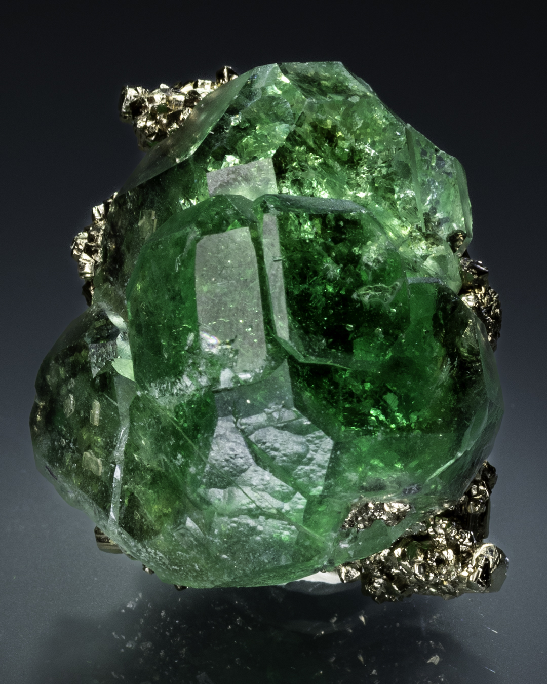 This striking specimen features vibrant emerald-green fluorite crystals with exceptional translucency and rich internal glow, beautifully accented by brilliant pyrite clusters. The contrast between the glassy green fluorite and the metallic golden pyrite creates a stunning visual harmony that highlights the mineralogical elegance of the Milpo Mine, one of Peru’s most renowned localities for aesthetic mineral combinations.